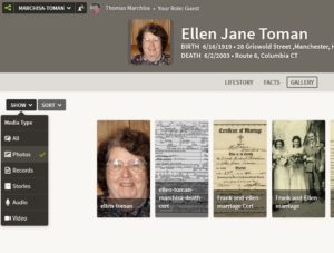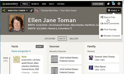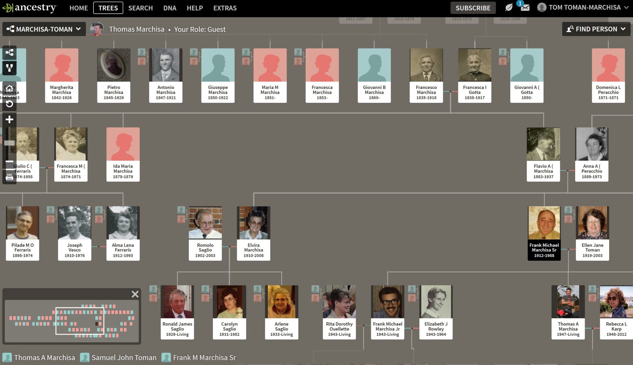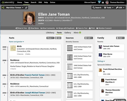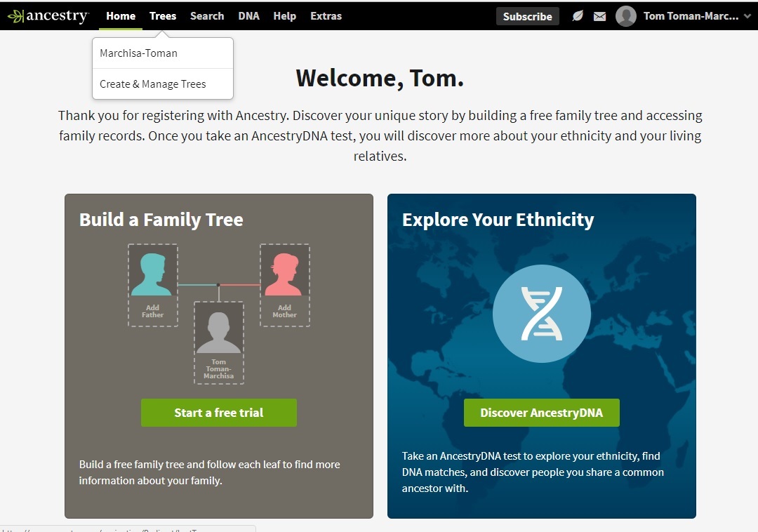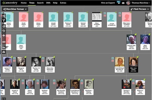 You MUST login to Ancestry.com from this website to get to the Marchisa-Toman Family Tree directly. When you successfully login to Ancestry.com from this website, you should see a screen similar to this one