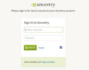 Click the Login link to Ancestry.com from the Toman or Marchisa Ancestry pages or alternatively, access www.ancestry.com from your browser.